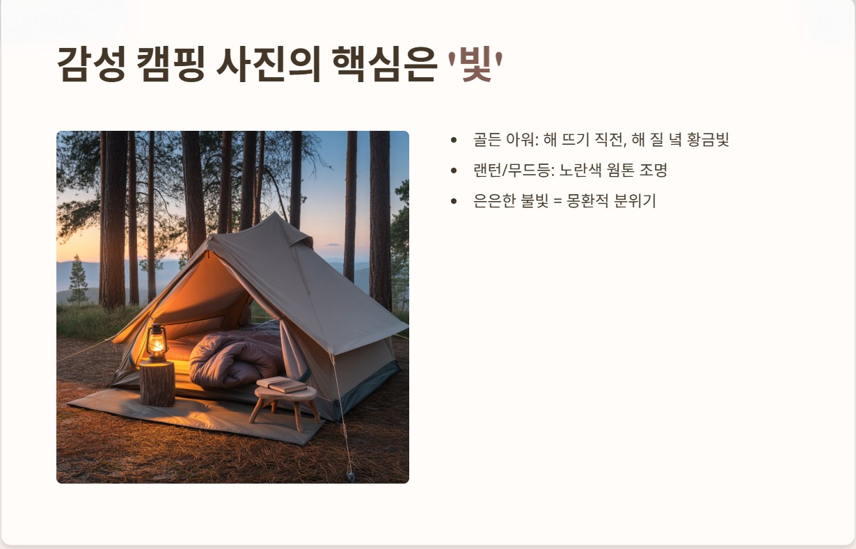 감성 캠핑 사진의 핵심은 ‘빛’이다