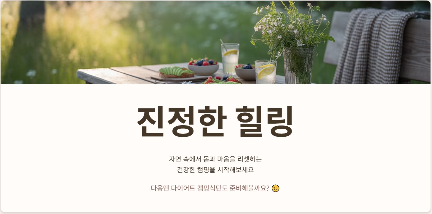 캠핑은 단순한 '야외활동' 그 이상이죠. 자연과 마주하며 내 몸과 마음을 리셋하는 소중한 시간이니까요. 그런 캠핑에서 인스턴트 음식만 먹기엔... 너무 아깝잖아요? 이번 글이 여러분의 다음 캠핑에 작지만 큰 건강한 변화를 줄 수 있길 바라며, 혹시 여러분만의 꿀팁이나 레시피가 있다면 댓글로 꼭 공유해주세요! 다음엔 ‘다이어트 캠핑식단’도 준비해볼까요? 😉
